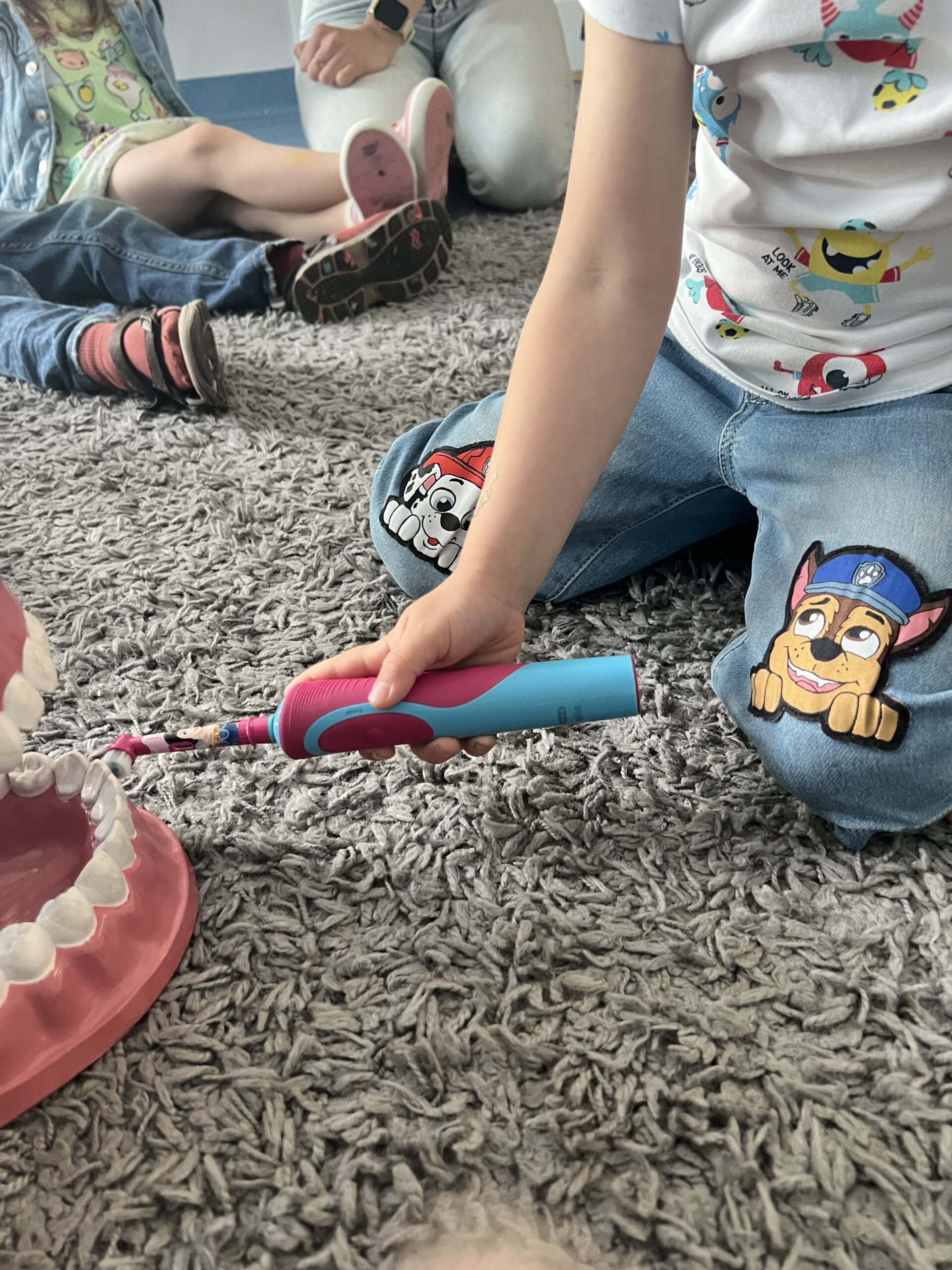 Podczas warsztatów każde dziecko miało szanse wyszczotkować zęby szczotką manualna, elektryczną z główką okrągłą i główką podłużną na modelu,a także dotknąć włókien różnych szczotek – także tych skierowanych do różnych grup wiekowych.